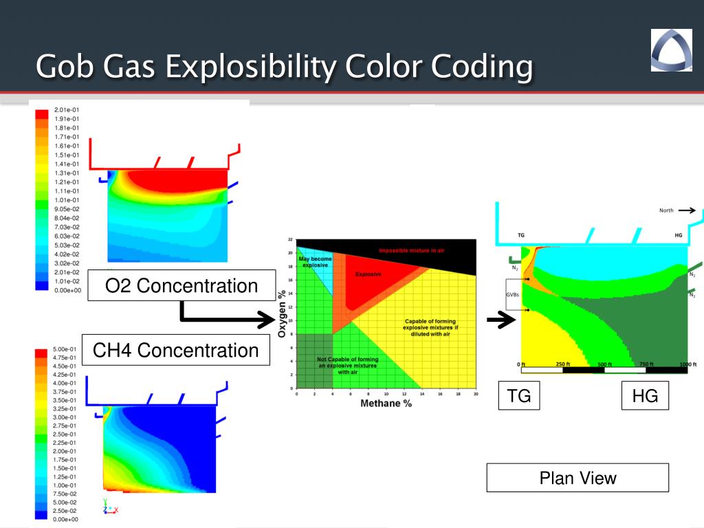 Gob Gas Explosibility Color Coding O2 Concentration CH4 Concentration TG HG Plan View