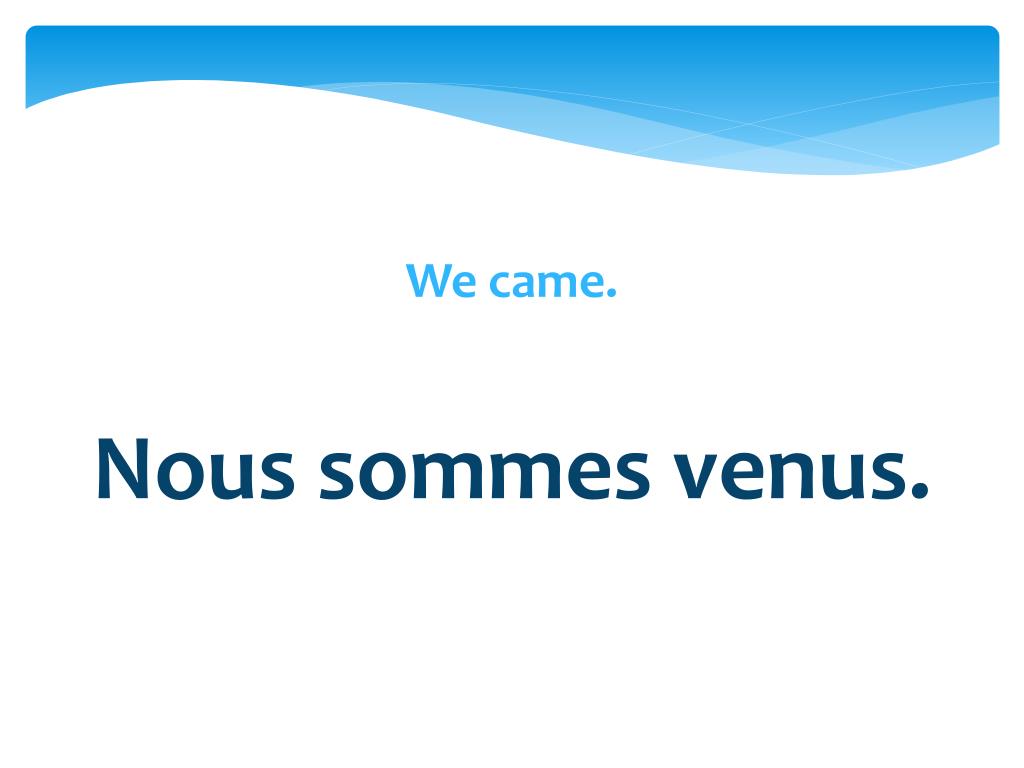 venir je tu il elle on suis venu(e) es venu(e) est venu(e) nous vous ils elles sommes venu(e)s êtes venu(e)(s) sont venu(e)s