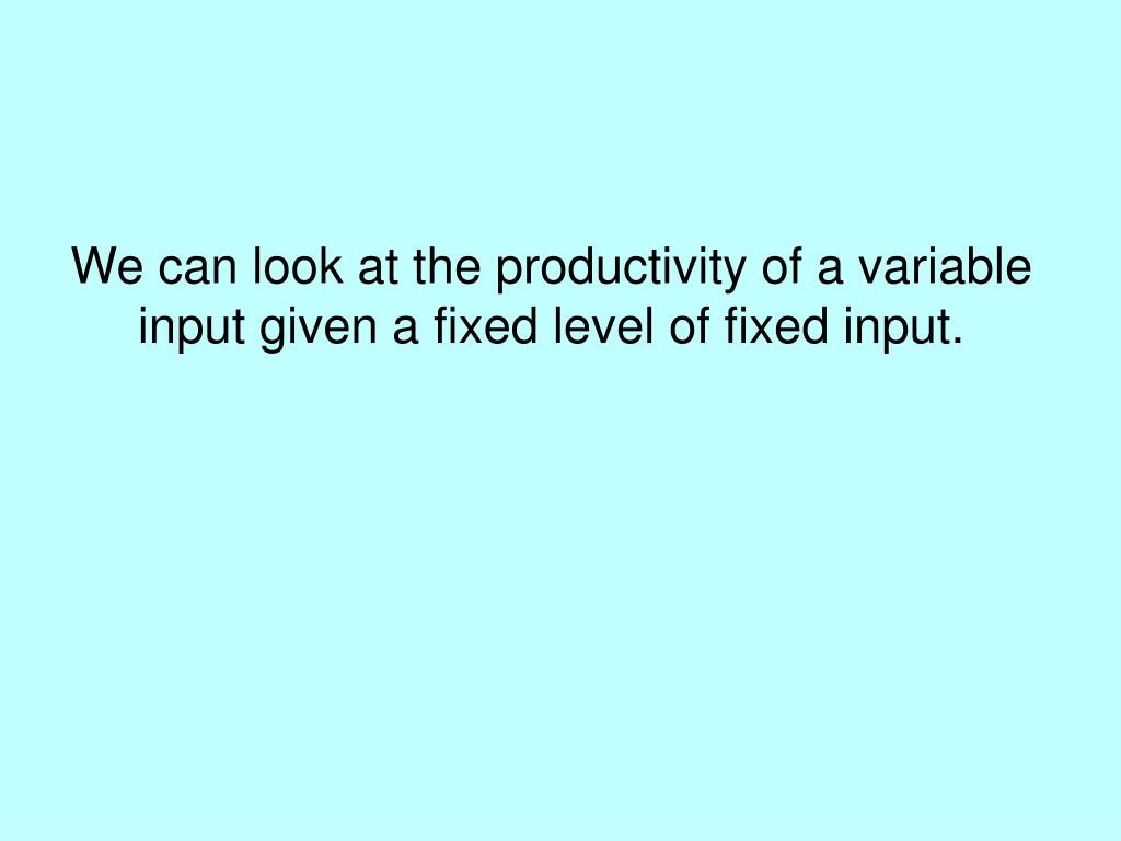 We can look at the productivity of a variable input given a fixed level of fixed input.