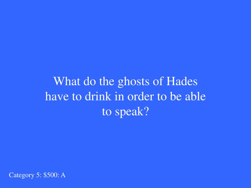 What do the ghosts of Hades have to drink in order to be able to speak? Category 5: $500: A