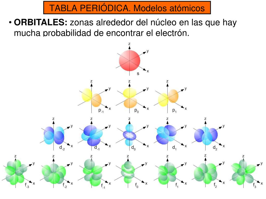 TABLA PERIÓDICA. Modelos atómicos • ORBITALES: zonas alrededor del núcleo en las que hay mucha probabilidad de encontrar el electrón.