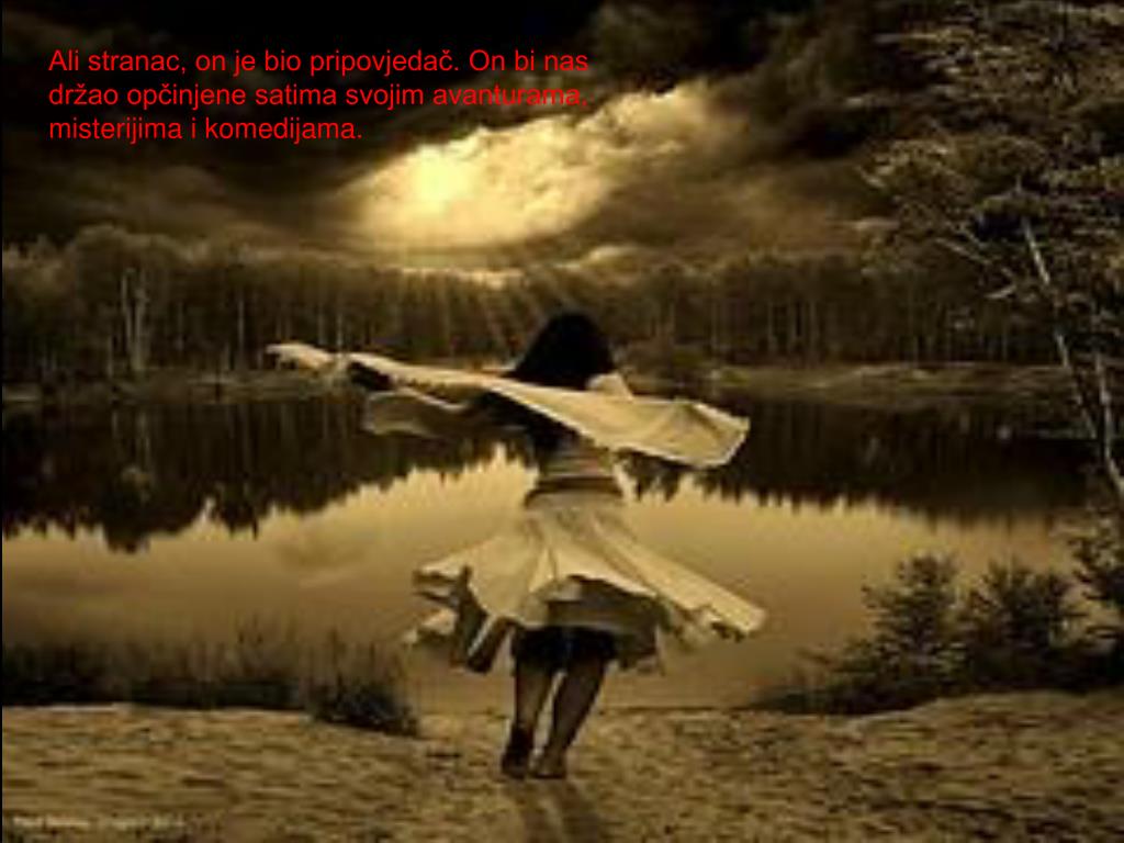 Ali stranac, on je bio pripovjedač. On bi nas držao opčinjene satima svojim avanturama, misterijima i komedijama.