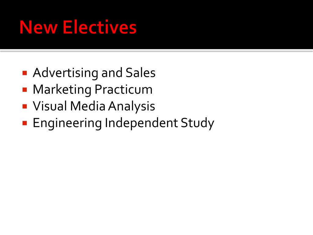 New Electives • Advertising and Sales • Marketing Practicum • Visual Media Analysis • Engineering Independent Study