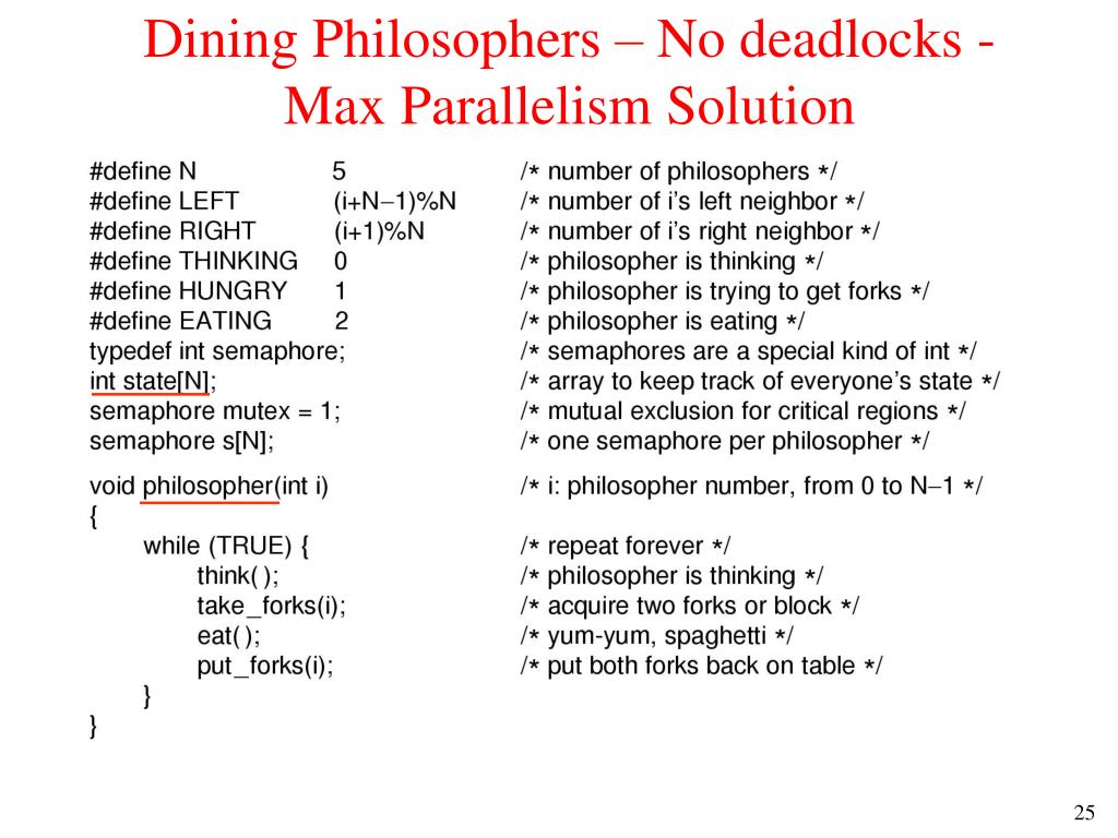 Dining Philosophers – No deadlocks -Max Parallelism Solution
