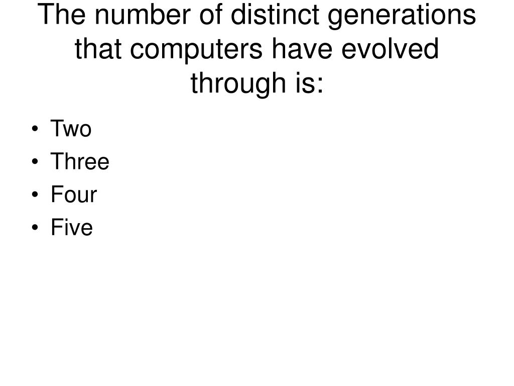 The number of distinct generations that computers have evolved through is: • Two • Three • Four • Five