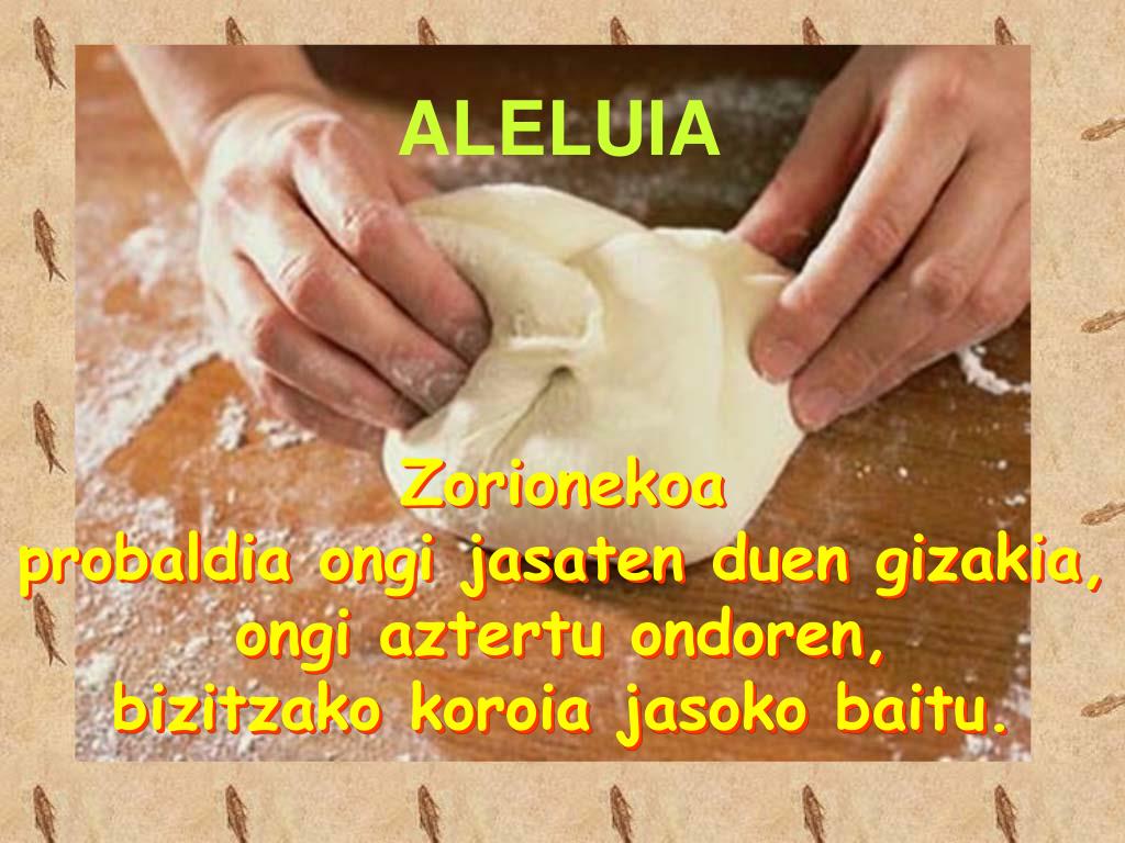 ALELUIA Zorionekoa probaldia ongi jasaten duen gizakia, ongi aztertu ondoren, bizitzako koroia jasoko baitu.
