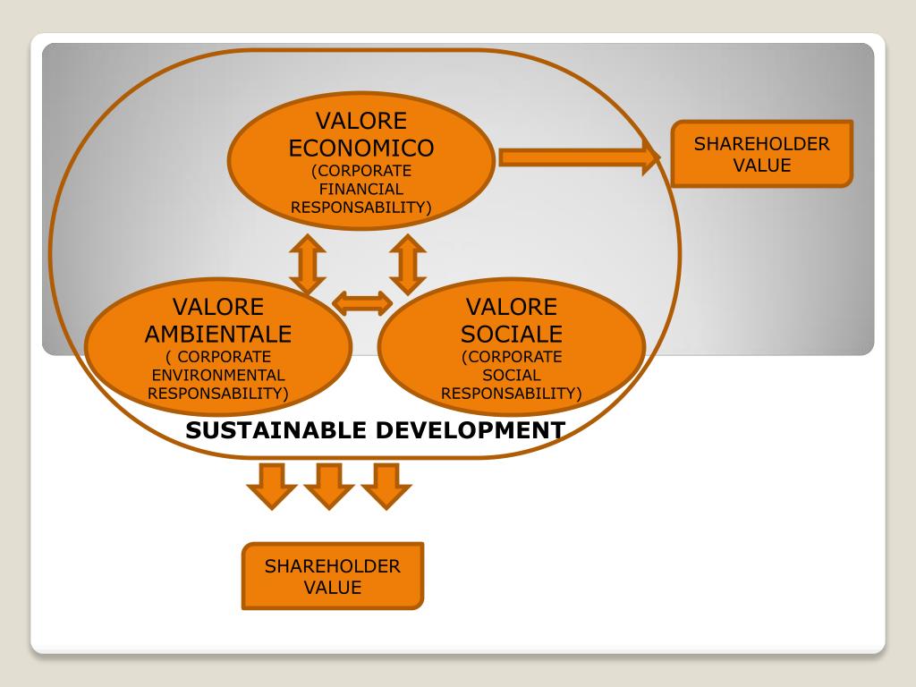 VALORE ECONOMICO (CORPORATE FINANCIAL RESPONSABILITY) SHAREHOLDER VALUE VALORE AMBIENTALE ( CORPORATE ENVIRONMENTAL RESPONSABILITY) VALORE SOCIALE (CORPORATE SOCIAL RESPONSABILITY) SUSTAINABLE DEVELOPMENT SHAREHOLDER VALUE
