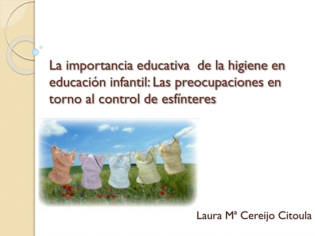 La importancia educativa de la higiene en educación infantil: Las preocupaciones en torno al control de esfínteres Laura Mª CereijoCitoula