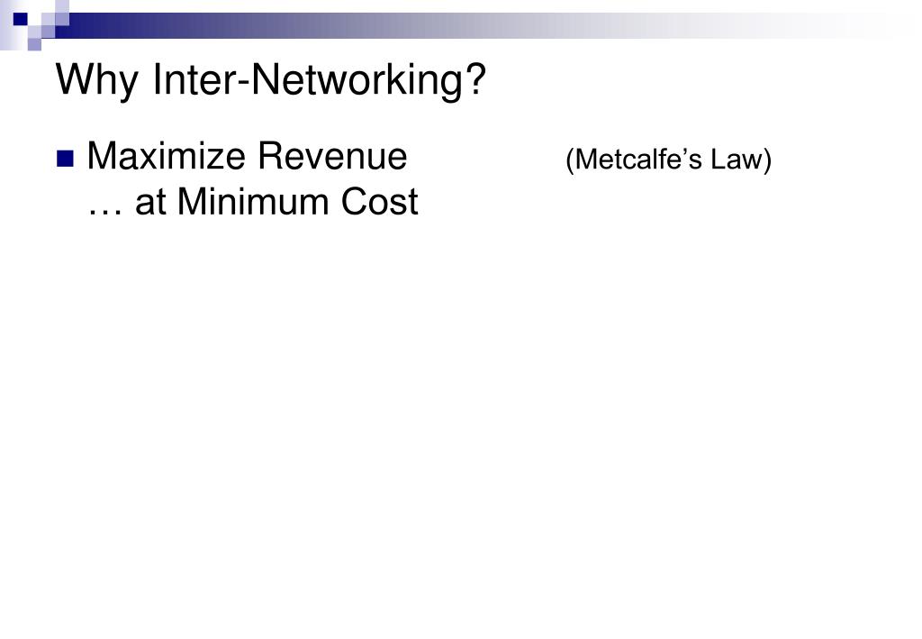 Why Inter-Networking? Maximize Revenue (Metcalfe’s Law)… at Minimum Cost
