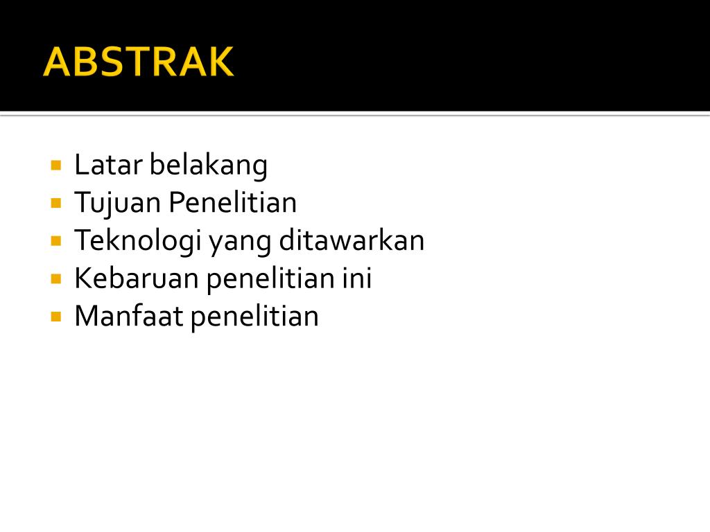 ABSTRAK • Latarbelakang • TujuanPenelitian • Teknologi yang ditawarkan • Kebaruanpenelitianini • Manfaatpenelitian