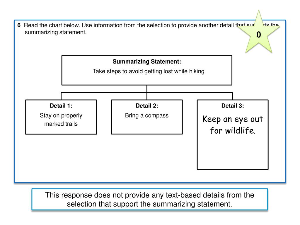 0 6 Read the chart below. Use information from the selection to provide another detail that supports the summarizing statement. This response does not provide any text-based details from the selection that support the summarizing statement.