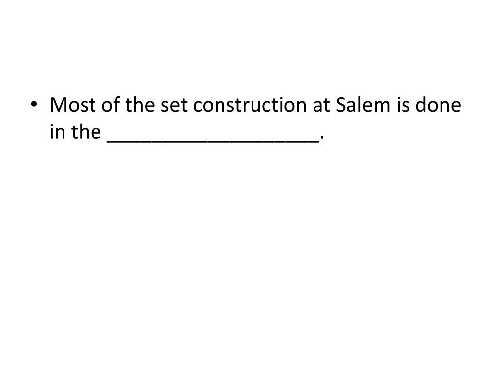 Intro tech final review. Most of the set construction at Salem is done in the ___________________. Most of the set construction at Salem is done in the scene shop and basement. The purity of a color is also known as its. The purity of a color is also known as its hue.