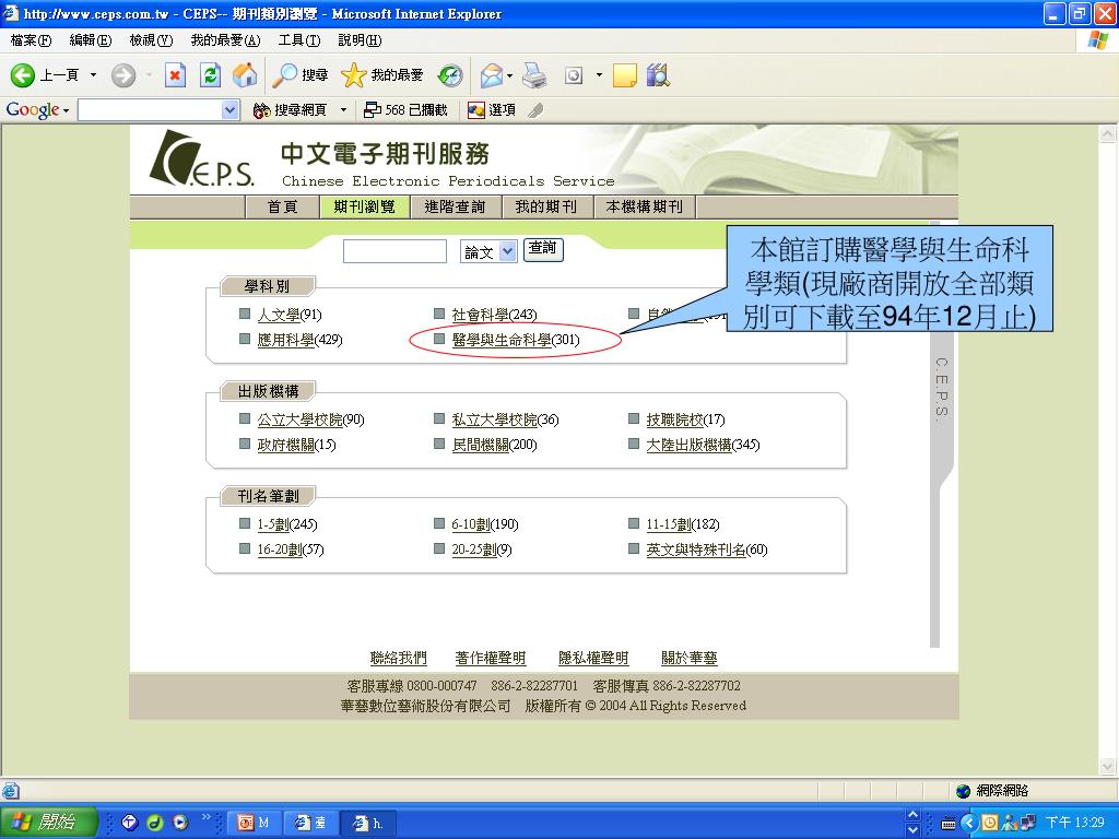 本館訂購醫學與生命科學類(現廠商開放全部類別可下載至94年12月止)本館訂購醫學與生命科學類(現廠商開放全部類別可下載至94年12月止)