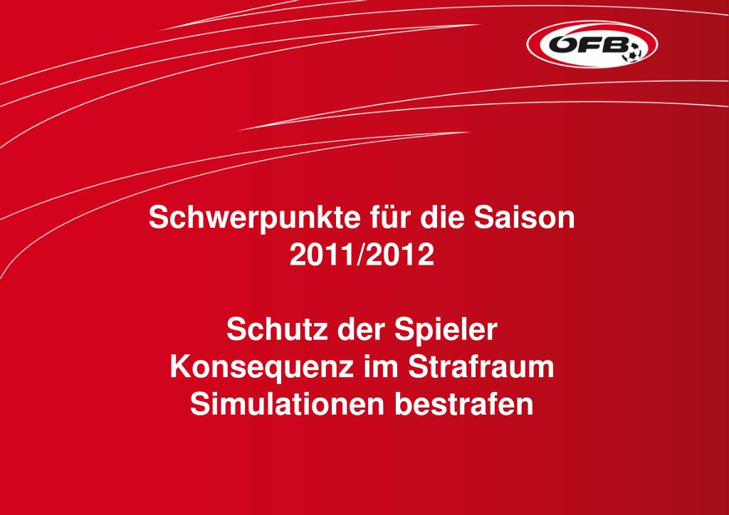 Schwerpunkte für die Saison 2011/2012 Schutz der Spieler Konsequenz im Strafraum Simulationen bestrafen