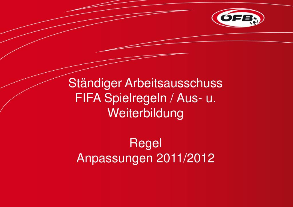 Ständiger Arbeitsausschuss FIFA Spielregeln / Aus- u. Weiterbildung Regel Anpassungen 2011/2012
