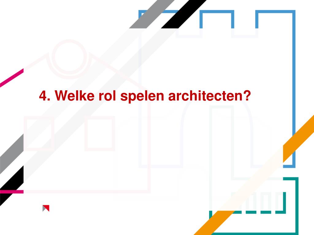 Architecten? • waar in het herontwikkelingsproces “komen, kunnen, willen, moeten” de architecten een rol spelen • bij de eigenaar • bij idee/conceptontwikkeling • bij gebruikers en exploitanten • bij investeerders/financier • of bij tonen, denken en job house • verandert de rol van de architect • “ruimtekunstenaar” > regisseur “ruimte ontwikkeling” • zitten de architecten nog in de juiste netwerken? Jongeren HBO