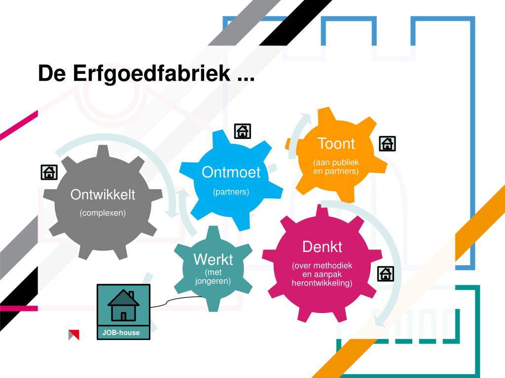De Erfgoedfabriek ... • Ontwikkelt • (complexen) Ontmoet • Ontmoet • (partners) JOB-house