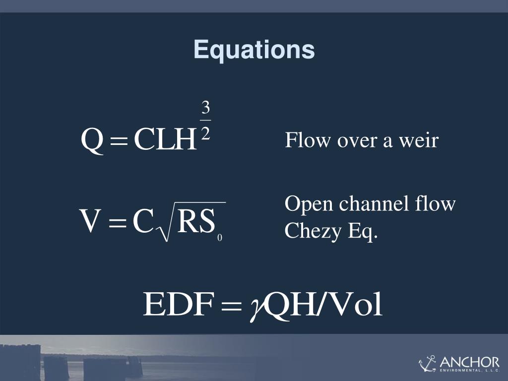 Equations Flow over a weir Open channel flow Chezy Eq.