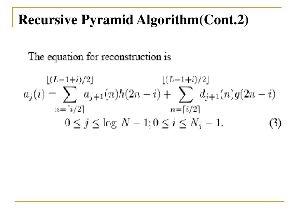 Goal • To propose a new VLSI architecture to implement 2-D Discrete Wavelet Transform (DWT). • Based on RPA (Recursive Pyramid Algorithm) • Parallel Architecture • Systolic Architecture to Deal with Borders