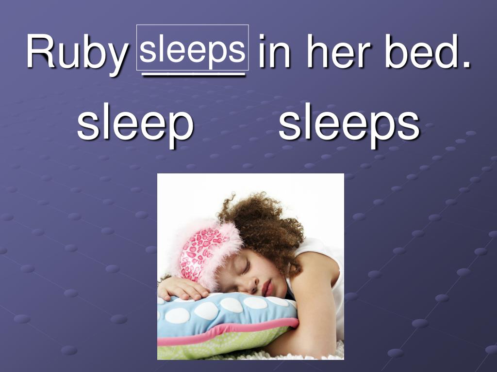 sleeps Ruby ____ in her bed. sleep sleeps