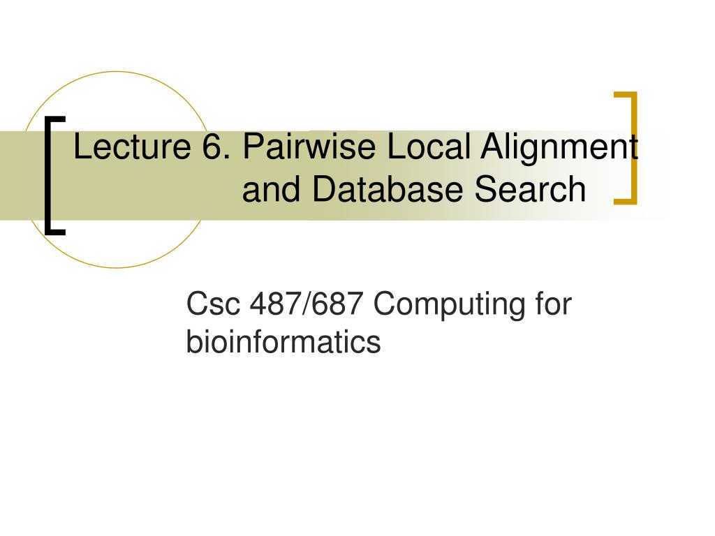 Lecture 6. Pairwise Local Alignment and Database Search Csc 487/687 Computing for bioinformatics