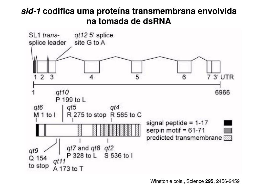 sid-1 codifica uma proteína transmembrana envolvida na tomada de dsRNA Winston e cols., Science 295, 2456-2459