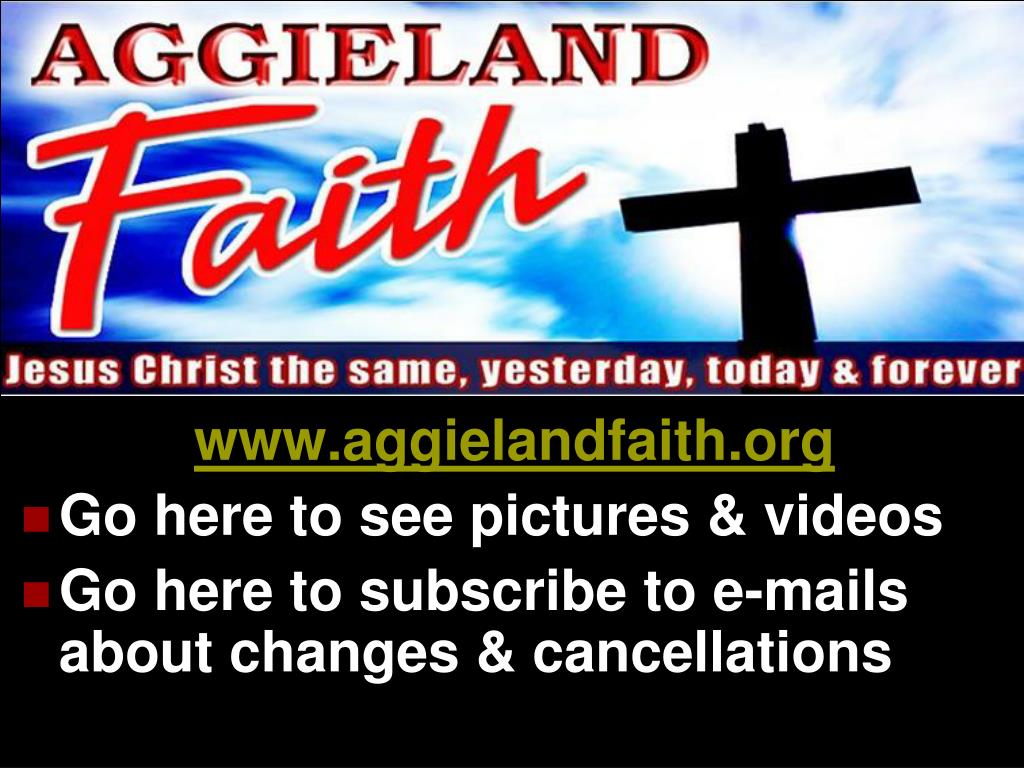 www.aggielandfaith.org Go here to see pictures & videos Go here to subscribe to e-mails about changes & cancellations