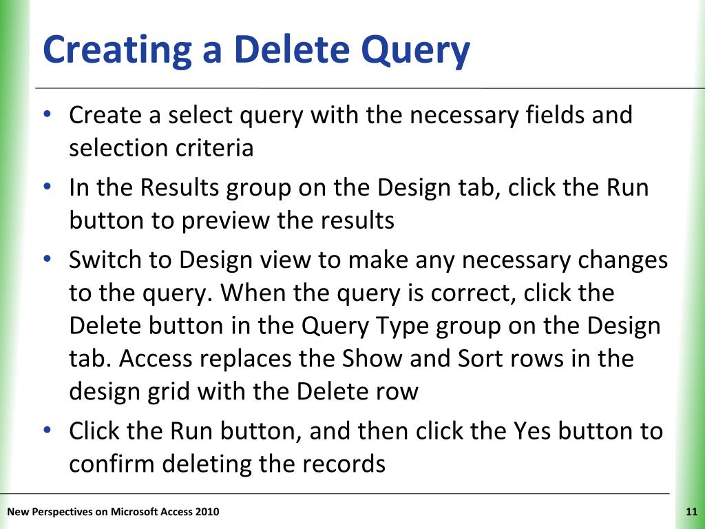 Creating a Delete Query New Perspectives on Microsoft Access 2010