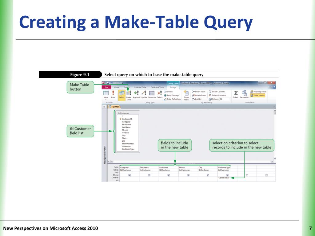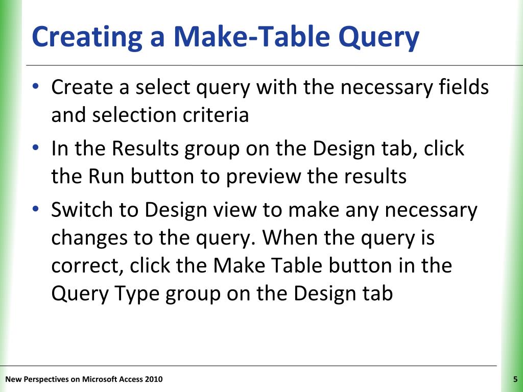 Creating a Make-Table Query New Perspectives on Microsoft Access 2010