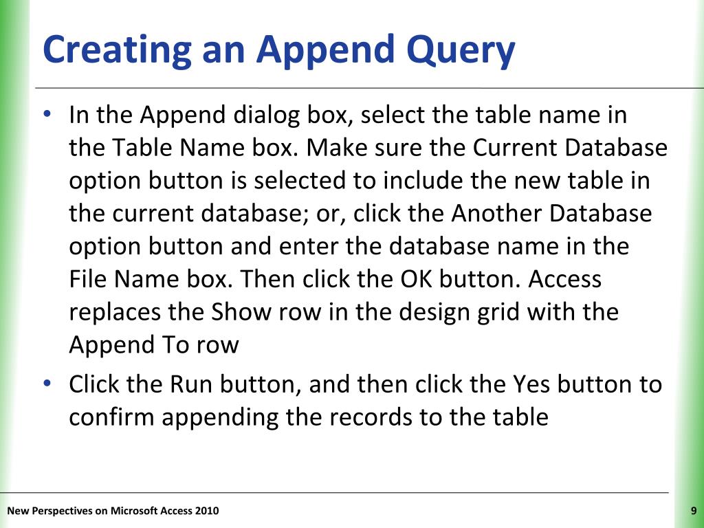 Creating an Append Query New Perspectives on Microsoft Access 2010
