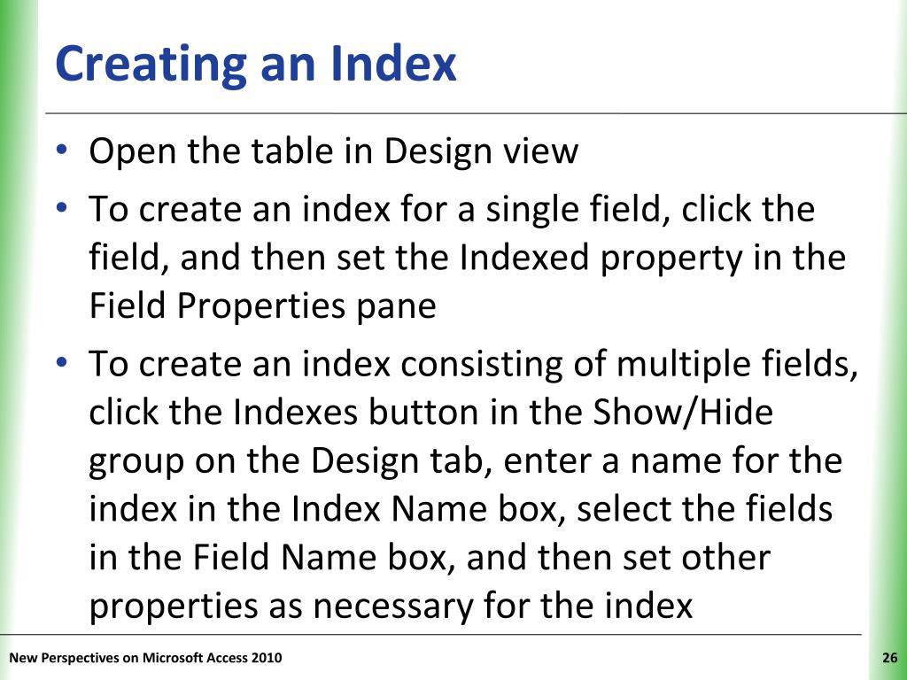 Creating an Index New Perspectives on Microsoft Access 2010