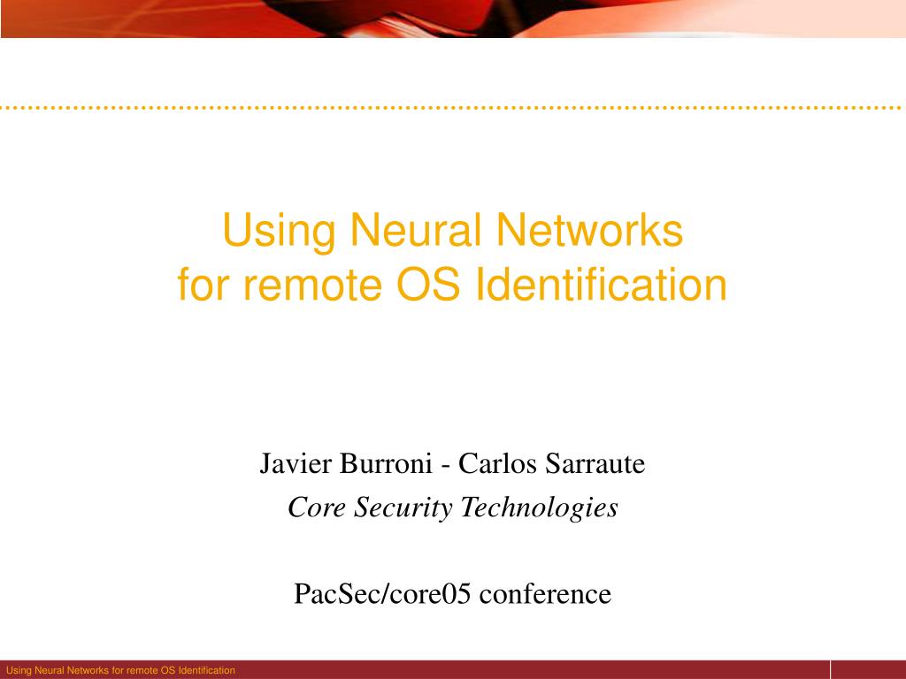 Using Neural Networks for remote OS Identification Javier Burroni - Carlos Sarraute Core Security Technologies PacSec/core05 conference