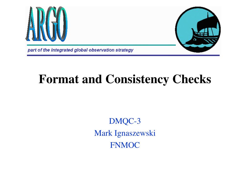Format and Consistency Checks DMQC-3 Mark Ignaszewski FNMOC