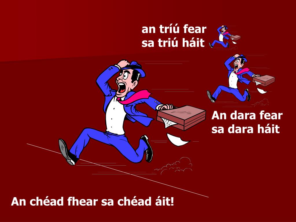 an tríú fear sa triú háit An dara fear sa dara háit An chéad fhear sa chéad áit!