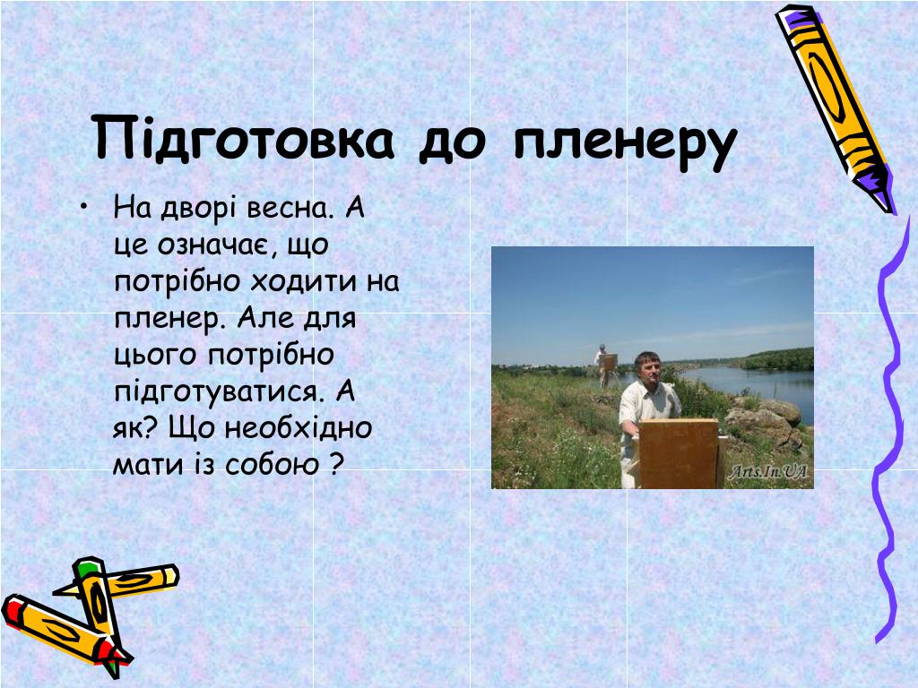 На дворі весна. А це означає, що потрібно ходити на пленер. Але для цього потрібно підготуватися. А як? Що необхідно мати із собою ? Підготовка до пленеру