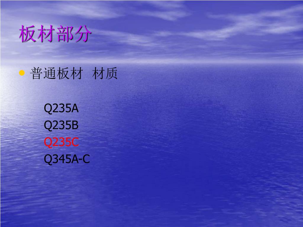 板材部分 • 普通板材 材质 Q235A Q235B Q235C Q345A-C