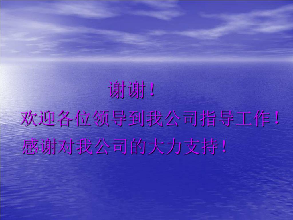 谢谢! 欢迎各位领导到我公司指导工作! 感谢对我公司的大力支持!