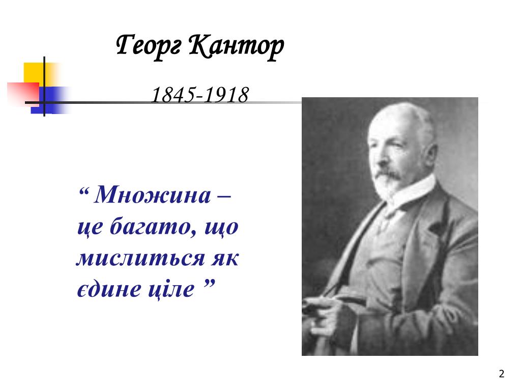 Георг Кантор 1845-1918 “ Множина – це багато, що мислиться як єдине ціле ”