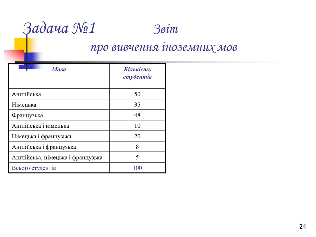 № 11 40 30 2) 40 30 30 40 В об'єднанні 40 елементів В об'єднанні 70 елементів