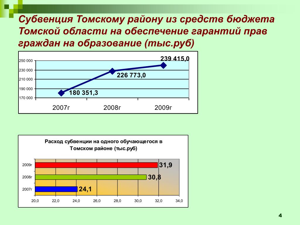 Финансирование общеобразовательных учреждений Томского района в 2007-2009 г.г. за счет субвенции на обеспечение государственных гарантий прав граждан на получение общедоступного и бесплатного дошкольного, начального общего, основного общего, среднего (полного) общего, а также дополнительного образования в рамках общеобразовательных программ в муниципальных общеобразовательных учреждениях 9 апреля 2009 г.