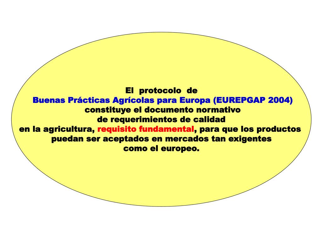 El protocolo de Buenas Prácticas Agrícolas para Europa (EUREPGAP 2004) constituye el documento normativo de requerimientos de calidad en la agricultura, requisito fundamental, para que los productos puedan ser aceptados en mercados tan exigentes como el europeo.