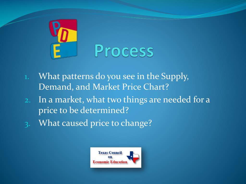 Process What trends do you see ? What are three things you have learned about how the market or free enterprise system operates? What concepts and TEKS would this activity teach?