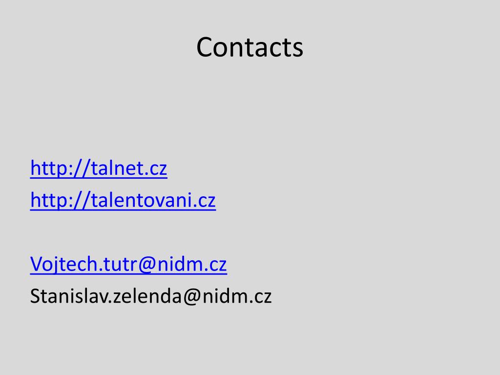 Contacts http://talnet.cz http://talentovani.cz Vojtech.tutr@nidm.cz Stanislav.zelenda@nidm.cz