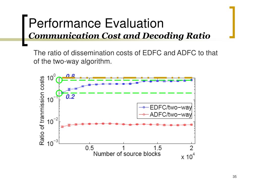 Performance EvaluationCommunication Cost and Decoding Ratio The ratio of dissemination costs of EDFC and ADFC to that of the two-way algorithm. 0.8 0.2