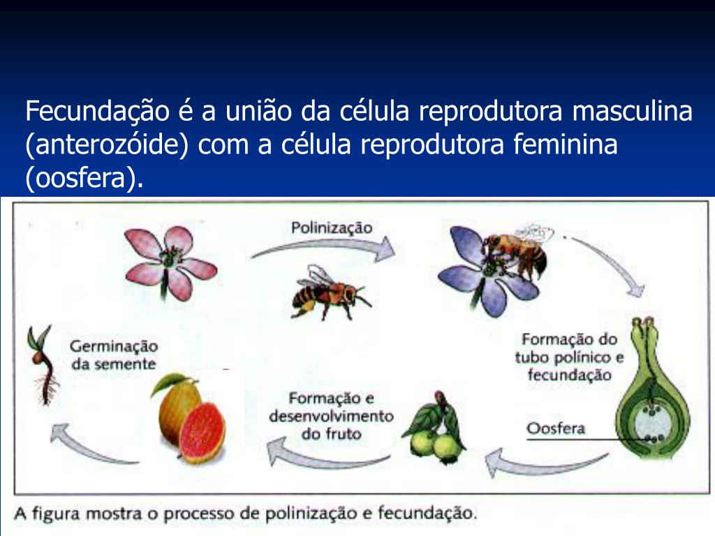 Fecundação é a união da célula reprodutora masculina (anterozóide) com a célula reprodutora feminina (oosfera).