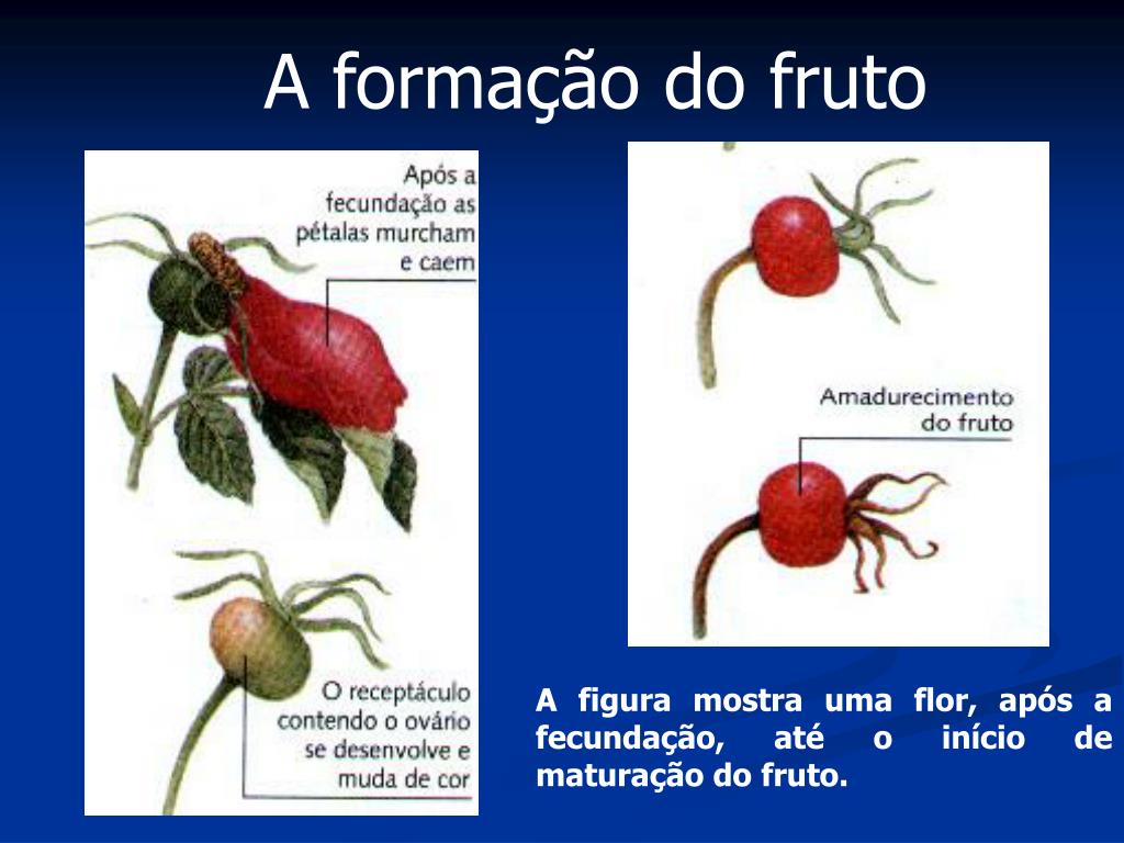 A formação do fruto A figura mostra uma flor, após a fecundação, até o início de maturação do fruto.