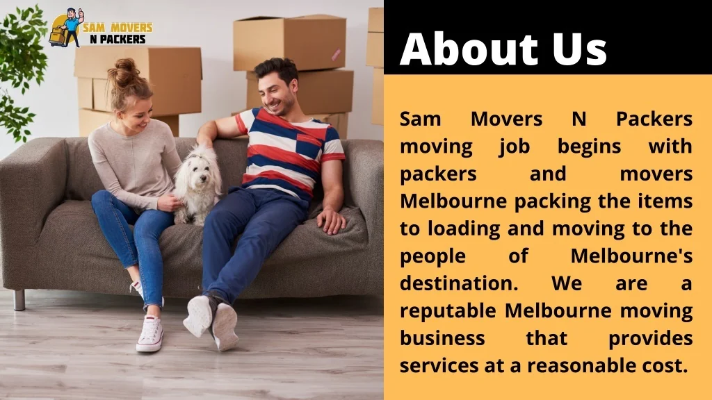 About Us Sam moving packers Melbourne packing the items to loading and moving to the people of destination. reputable Melbourne moving business that services at a reasonable cost. Movers job N Packers with movers begins and Melbourne's We are a provides