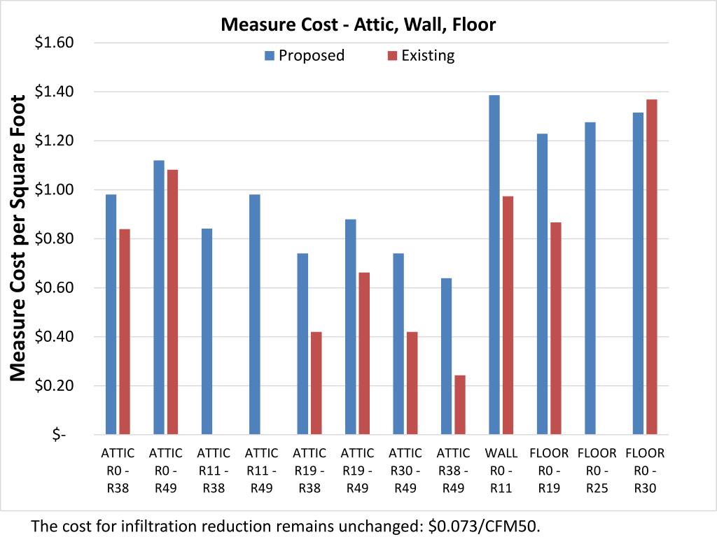 The cost for infiltration reduction remains unchanged: $0.073/CFM50.