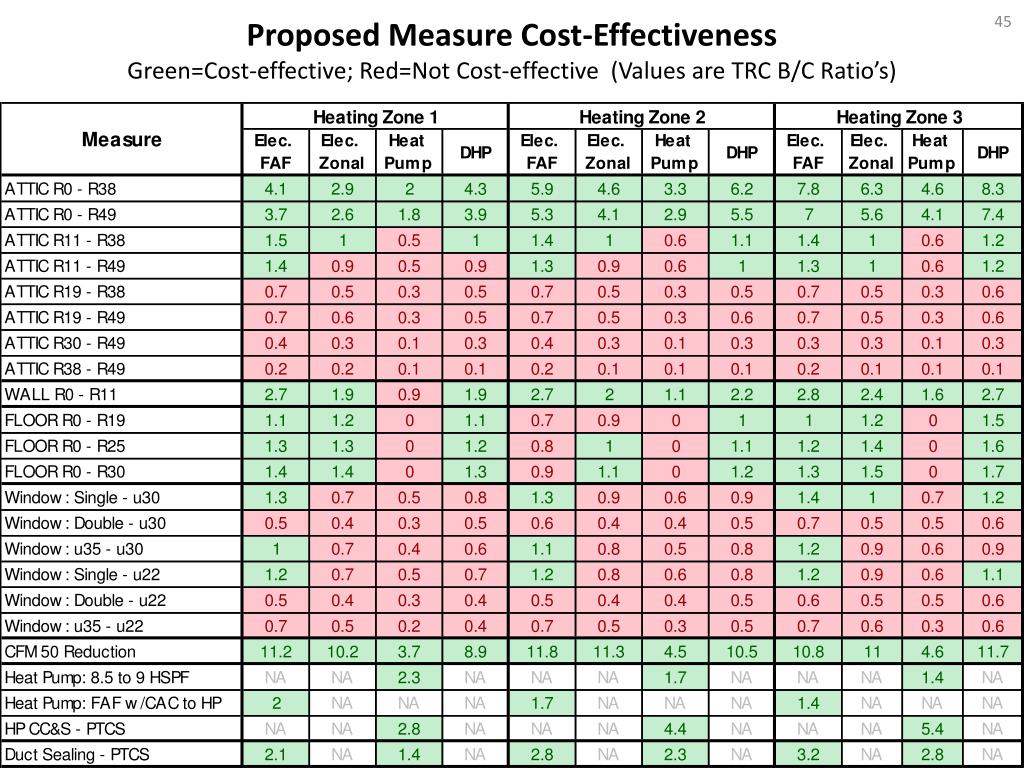 Proposed Measure Cost-Effectiveness Green=Cost-effective; Red=Not Cost-effective (Values are TRC B/C Ratio’s)