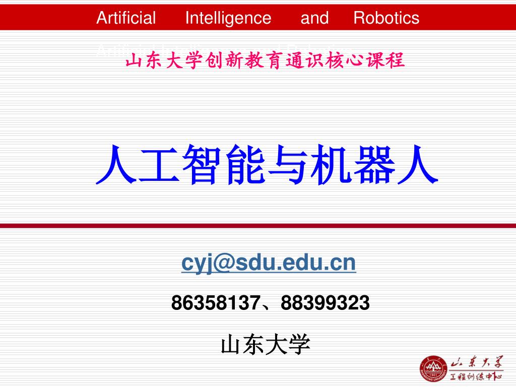 Artificial Intelligence and Robotics 山东大学创新教育通识核心课程 人工智能与机器人 cyj@sdu.edu.cn 86358137、88399323 山东大学